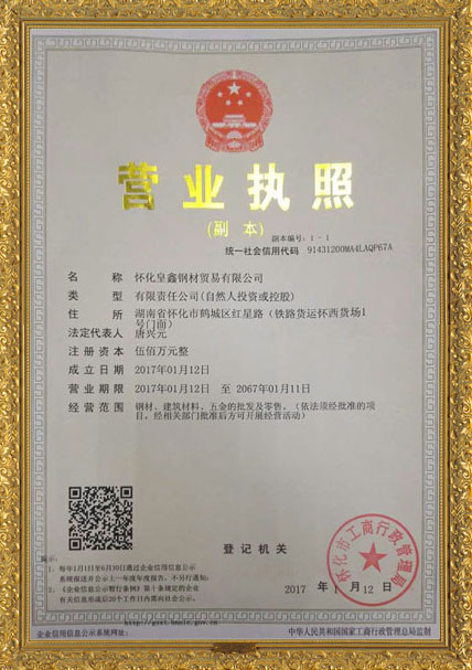 懷化皇鑫鋼材貿(mào)易有限公司,公司成立于2017年。原名懷化市鶴城區(qū)順利鋼材經(jīng)營(yíng)部,專業(yè)從事鋼材貿(mào)易十多年。位于懷化市南站鋼材市場(chǎng)大門口。主要經(jīng)營(yíng):